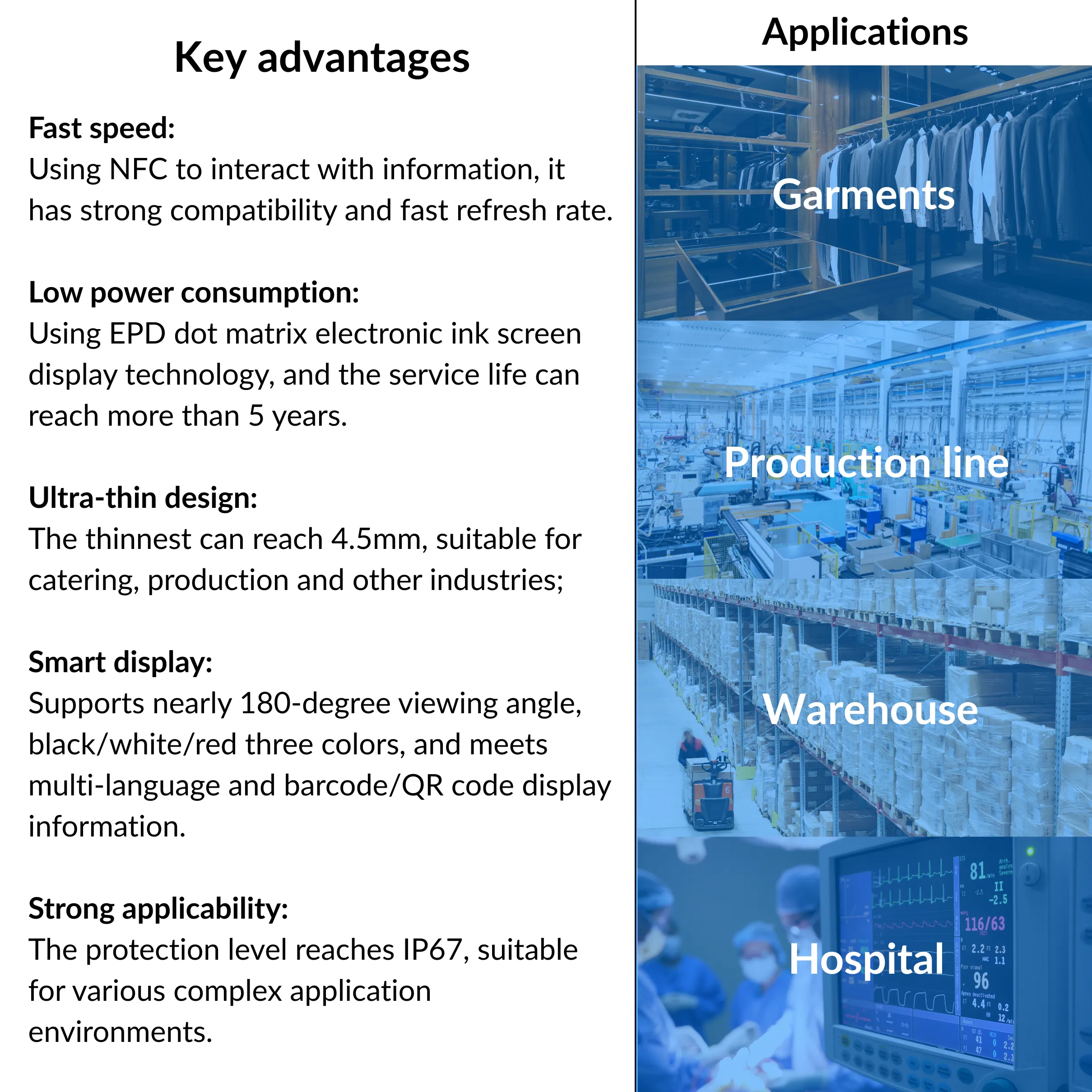 Retail & Pricing – Dynamic shelf labels for promotions, discounts, or inventory.